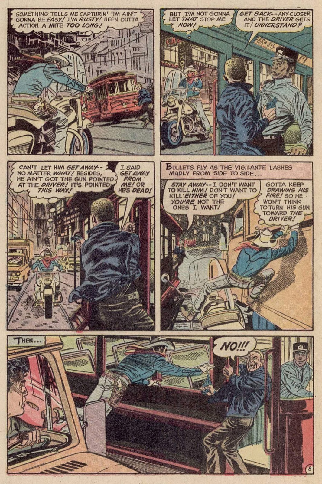 Never could quite figure out The Vigilante. He was a Golden Age hero who'd come out of retirement, yep, got that, but was he an actual cowboy who'd travelled forward in time to the '70's, which would be cool, or just a modern day average wrangler who'd decided to fight crime for no apparent reason?