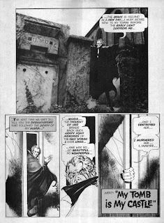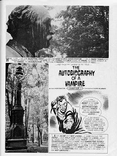 Autobiography Of A Vampire was a nice little strip from Skywald that seemed to vanish, unfinished, just as it was getting started. Ricardo Villamonte's art is much nicer than his later work for Marvel or DC, showing he was born to be a horror artist, and Archaic Al Hewetson's script is actually comprehensible for once, wrapping The Horror Mood around an actual story. I also like the fact Al went out and photographed his local cemetery and shoehorned it into the art. It adds even more gothic-ness to the piece and is nicely experimental.