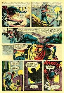Almuric. Roy Thomas, by now well used to adapting Howard, contributed a fast-paced, exciting script, I think wisely dumping the section of the book where Esau first arrives on Almuric and spends months living alone in the wilderness, regressing to a blissful state of barbarism. Although this is a fascinating part of the novel, particularly when you realise Howard is actually writing about himself, it would've slowed down the comic.