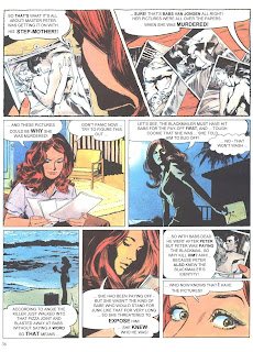 Kelly Green, as you'll see, is a cop's widow who gets involved on the periphery of crime after her husband's murder. Interestingly, we never actually see Kelly's husband Dan, as he buys it on the first page. But then, his work is done, setting our heroine on the path to her new life, and providing her with new crooked pals Spats, Jimmy Delocke & Meathooks, who are sort of her version of Doc Savage's Fabulous Five.