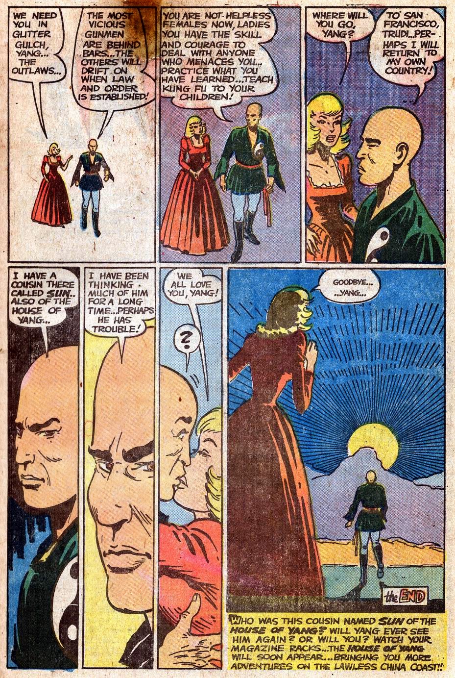 Yang is basically Kwai-Chang Caine with an attitude, traversing the Old West righting wrongs and breaking skulls, while constantly falling in love with, and then getting betrayed by, his arch nemesis, Dragon Lady Yin.